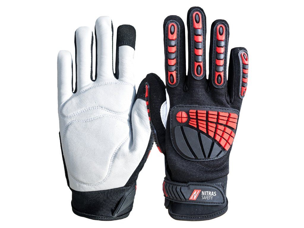 Kombinace jemné a odolné hovězí kůže Nappa v dlani a kvalitního textilního hřbetu s TPR ochranou kloubů zajišťuje maximální ochranu proti nárazu i mechanickému poškození. Díky gelovým výstelkám v dlani tlumí vibrace a zvyšují komfort při delší práci.