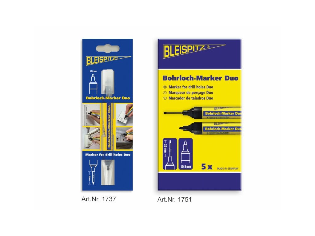 - Dvojitá funkce 2 v 1 – jeden popisovač pro běžné značení i značkování otvorů.