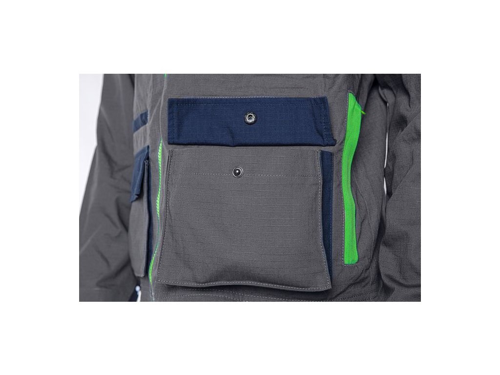 - Úložný prostor: vícefunkční kapsy se zipy a druky pro uložení nářadí a drobných předmětů