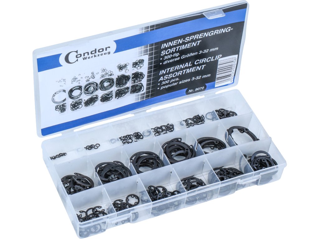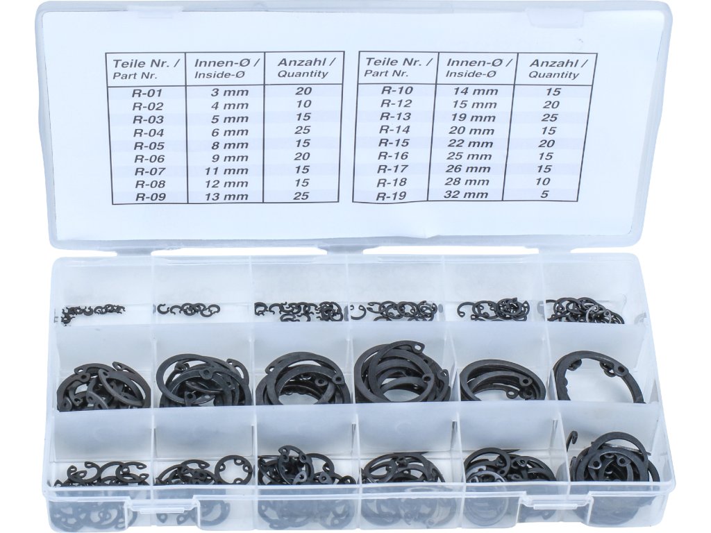 Sada pojistných kroužků, 3 – 32mm, 300 ks, VNITŘNÍ